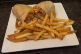 A generous portion of gyro meat served on a pita. Topped with tomatoes, tzatziki sauce, white onions and served with fries.